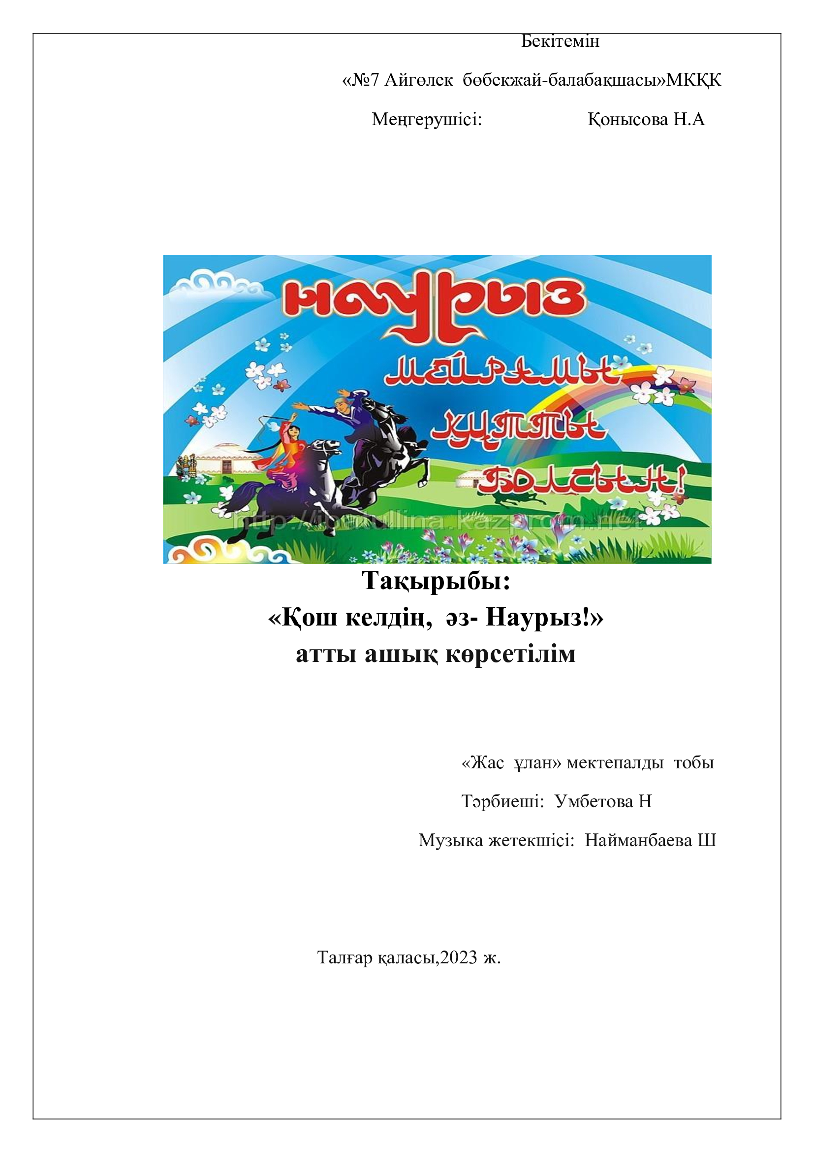 «№7 Айгөлек бөбекжай-балабақшасы» МКҚК