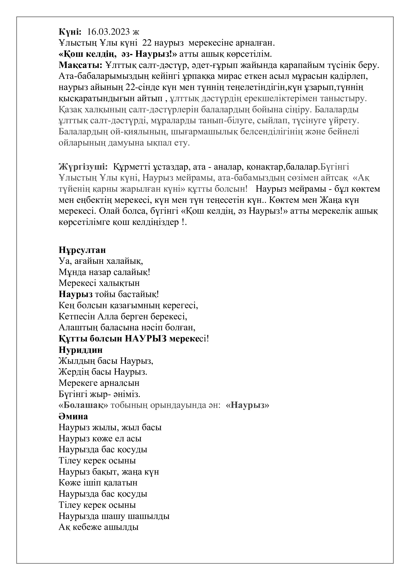 22 наурыз Болашақ